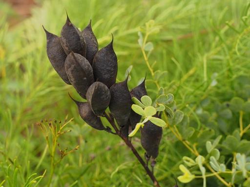 Collecting seeds of Blue false indigo is a pleasurable experience. Its important to wait for the seeds to ripen before harvesting as immature seeds won't germinate. Immature seed pods are green, turning black when ripe.
