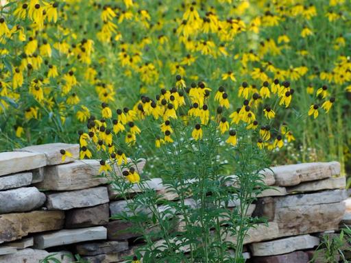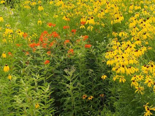 Many wildflowers are companion plants to Ratibida pinnata. See examples of a few of them growing together below.