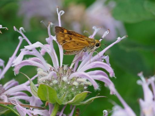 Bee balm attracts many species of bees to its beautiful flowers including several types of Bumble bees as well as smaller bees, such as Leaf-cutter bees, Miner bees, Cuckoo bees and Halictid bees. Butterflies and Skippers swarm Bee balm flowers for nectar. Fast flying Sphinx moths (Hemaris diffinis and Hemaris thysbe) also visit the flowers for nectar. Ruby throated hummingbirds are reported to nectar on Bee Balm flowers, but I haven't had the good fortune to see them. The video below shows an American Bumble bee (Bombus pensylvanicus) working the Bee balm flowers.