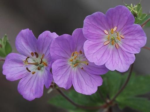 Geranium maculatum has an interesting way to avoid self pollination. The 10 stamens are situated in a circle around the style. The outer half of the stamens develop within 1 or 2 days of the flower opening with the inner half delaying maturation until the second or third day. After the stamens have shed most of their pollen, the anthers are dropped from the filaments and the stigma matures. This sequence of development prevents the male (stamens) and female (stigma) being fertile simultaneously on an individual flower- thus avoiding self pollination and preserving gene diversity.
